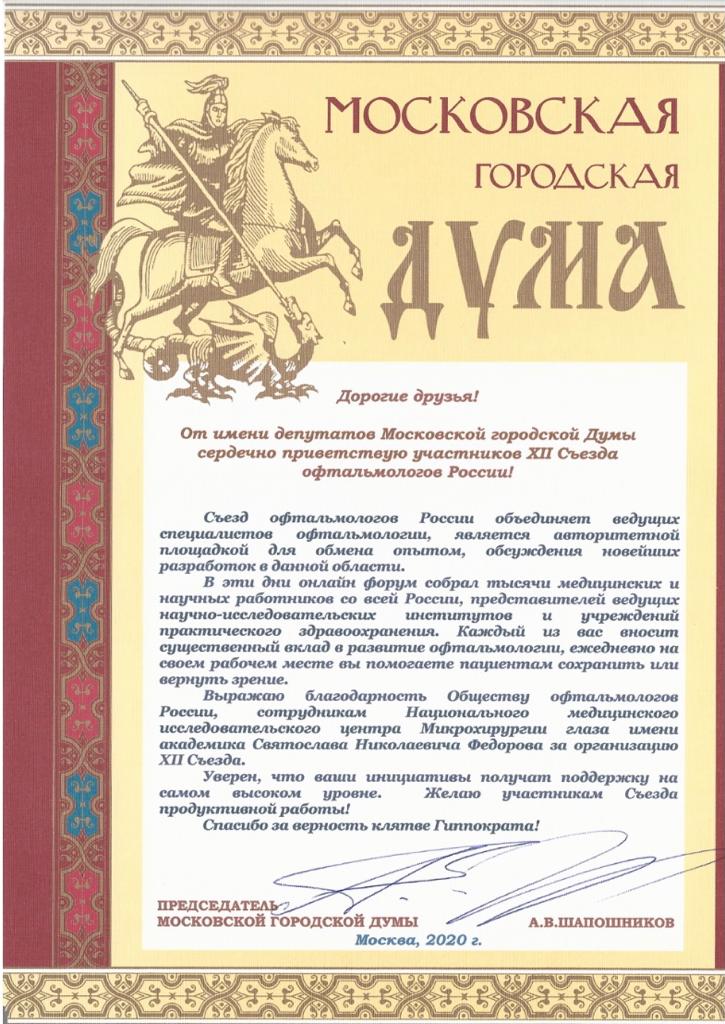 Приказ МЗ РФ «О проведении XII Съезда Общества офтальмологов России»