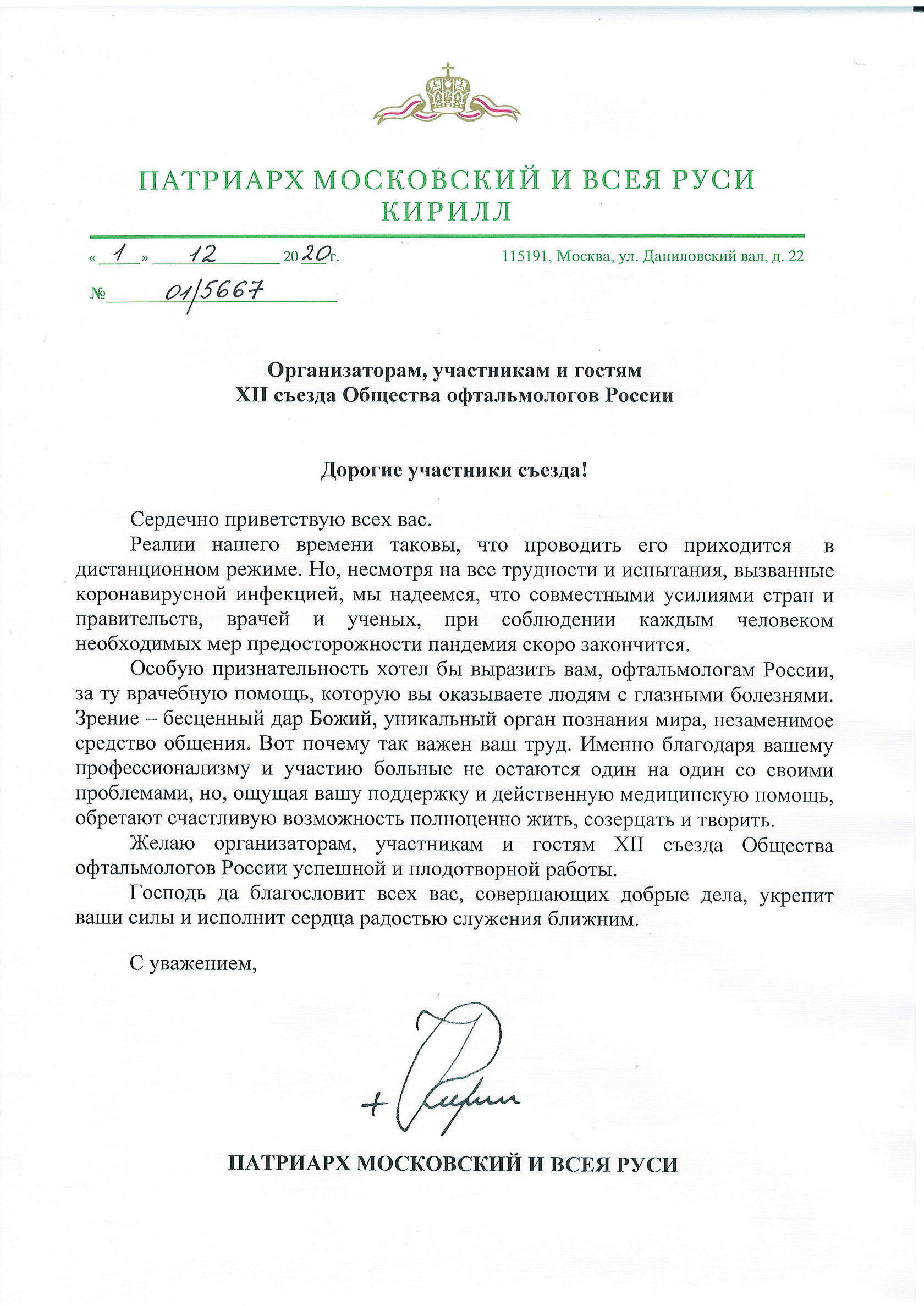Приветственное слово Патриарха Московского и Всея Руси Кирилла